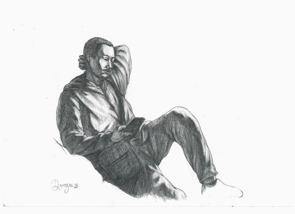 Etude pour une figure au téléphone, 2026, crayon sur papier, A4